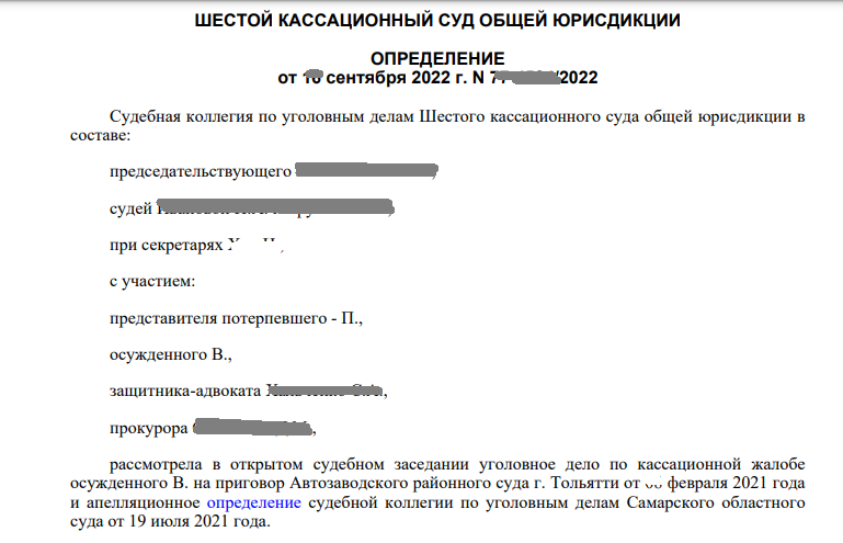 ШЕСТОЙ КАССАЦИОННЫЙ СУД ОБЩЕЙ ЮРИСДИКЦИИ ОПРЕДЕЛЕНИЕ